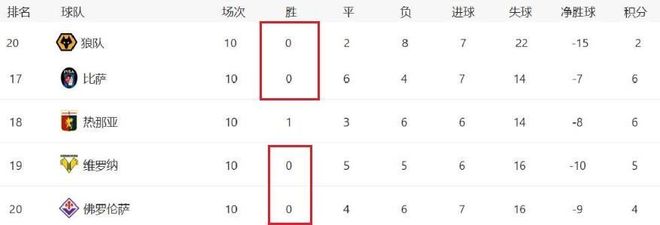 又少两支!五大联赛还剩四队没赢球,狼队输球最多紫百合令人意外