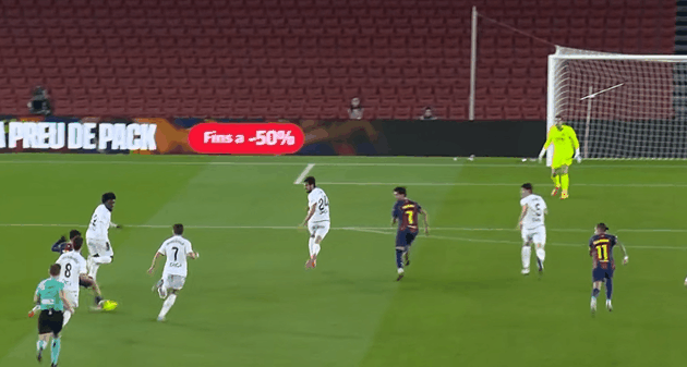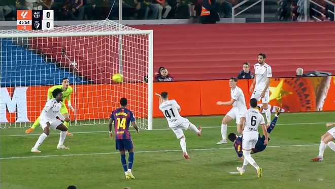 超七成的控球率,促使巴萨全面围攻奥萨苏纳的禁区,但是面对密集的防守,屡次进攻接连被挡出。第40分钟,亚马尔晃开三人的防守,将球送入禁区,面对大好的机会,费兰托雷斯倒钩遗憾偏出球门。半场比赛结束,两队都没有取得进球。整个上半场,比赛几乎完全呈现一边倒,客场作战的奥萨苏纳只有在开场的几分钟,阵型相对激进。随后“541”的站位全面回防,三条线的距离非常小,禁区附近组成了密集的阵型,不给巴萨渗透的机会。而巴塞罗那虽然拥有超高的控球率,但是用尽了各种办法,底线传中、45度传中、中路渗透、远射,包括个人能力的突破,尝试打开突破口,但是一次次的尝试均无功而返。大量的传中,由于禁区人数不占优,加上身高也处于劣势,因此很难得到绝对的攻门机会。